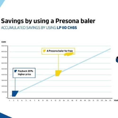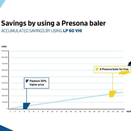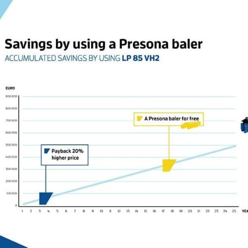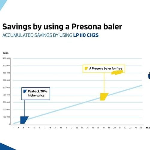 Viele Ballenpressen von Presona sind 20 bis 30 Jahre länger in Nutzung. Je mehr Jahre, desto grösser die Einsparung.
