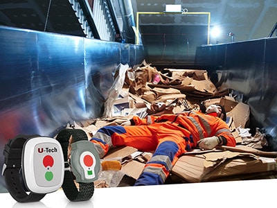 Systemet består av en sändare som personalen i anläggningen bär på sig samt en skyddsbåge som monteras på transportbandet. Det nödstoppar anläggningen om personal åker med bandet upp.